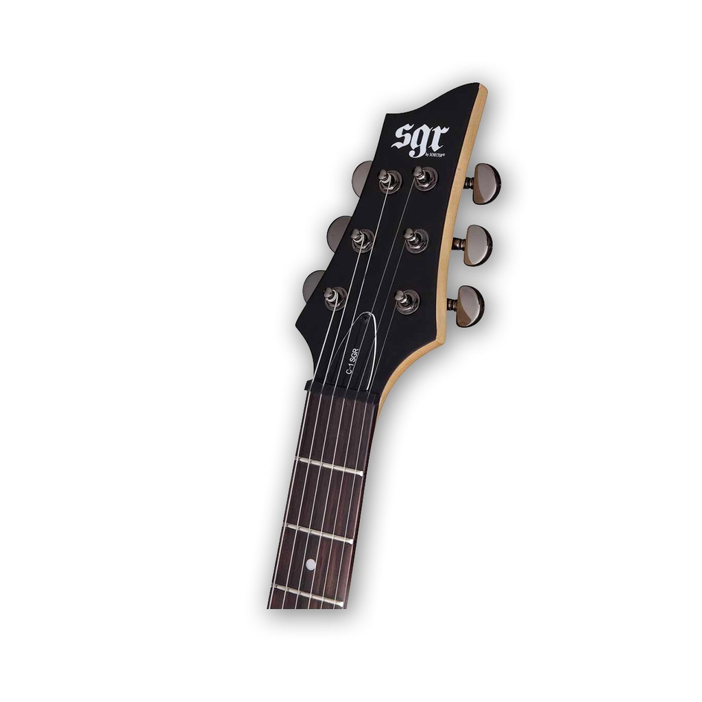 La Guitarra Eléctrica SGR by Schecter C-1 (Walnut Satin) presenta una escala de 25,5" (648mm) y un mástil delgado tipo 'C'. Con un diapasón de 24 trastes medium y un radio del diapasón de 14" (355mm), su cejuela de grafito tiene un ancho de 1,653" (42mm). La varilla de ajuste de 2 vías con tuerca Allen de 5/32" (4mm) proporciona un ajuste óptimo.